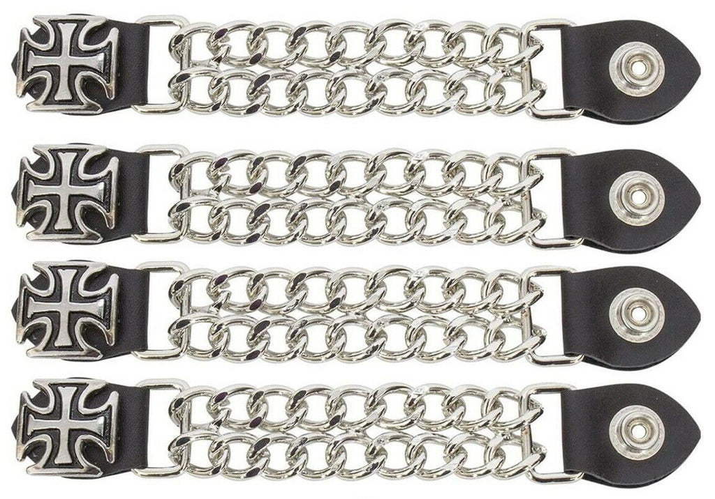 4PC MOTORCYCLE BIKER DUAL METAL CHAIN CHOPPER CROSS GRAPHIC VEST EXTENDER -