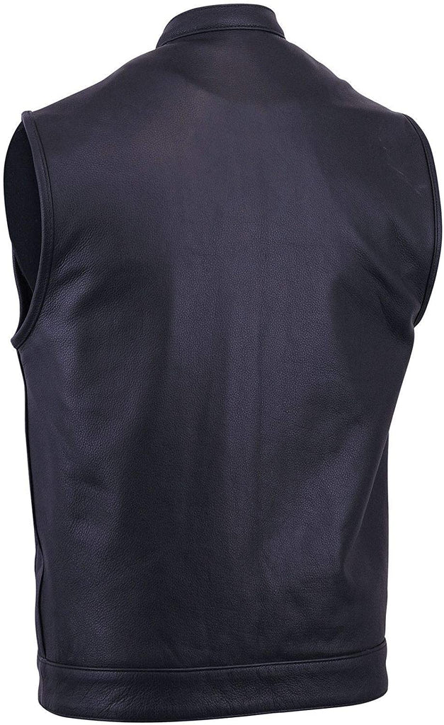 EXCELSIOR INT MEN'S CLUB STYLE SLEEVELESS LEATHER VEST WITH CONCEALED GUN POCKET MOTORCYCLE RIDER JACKET FOR MEN