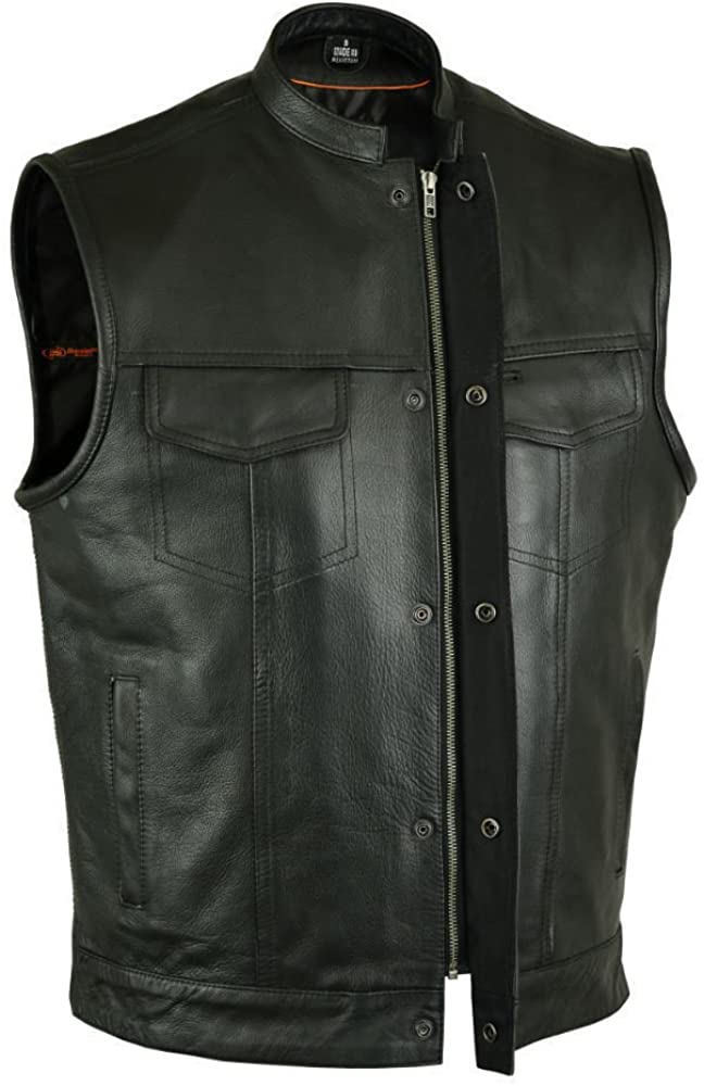 EXCELSIOR INT MEN'S SONS OF ANARCHY SLEEVELESS LEATHER VEST WITH 2 GUN 2 CHEST POCKETS SINGLE BACK PANEL MOTORCYCLE RIDER JACKET FOR MEN