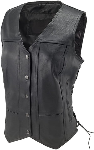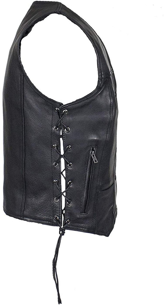 EXCELSIOR INT WOMEN'S CONCEALED CARRY SLEEVELESS SOLID SOFT LEATHER VEST WITH SIDE LACES MOTORCYCLE BIKER JACKET FOR WOMEN