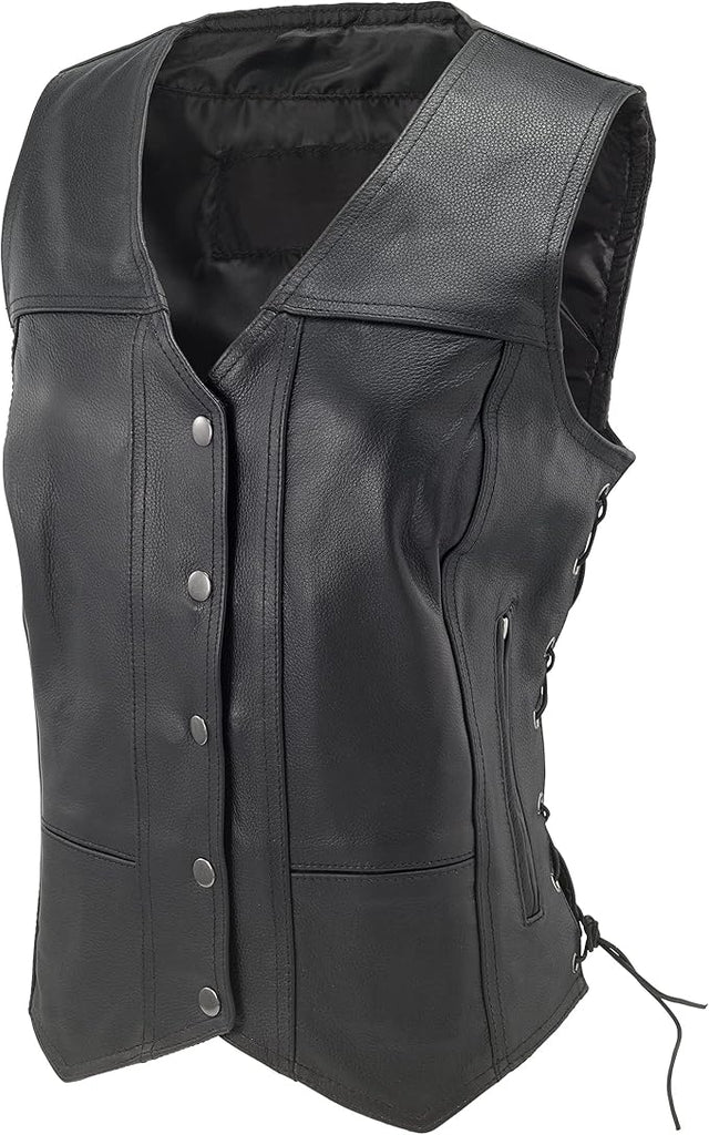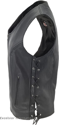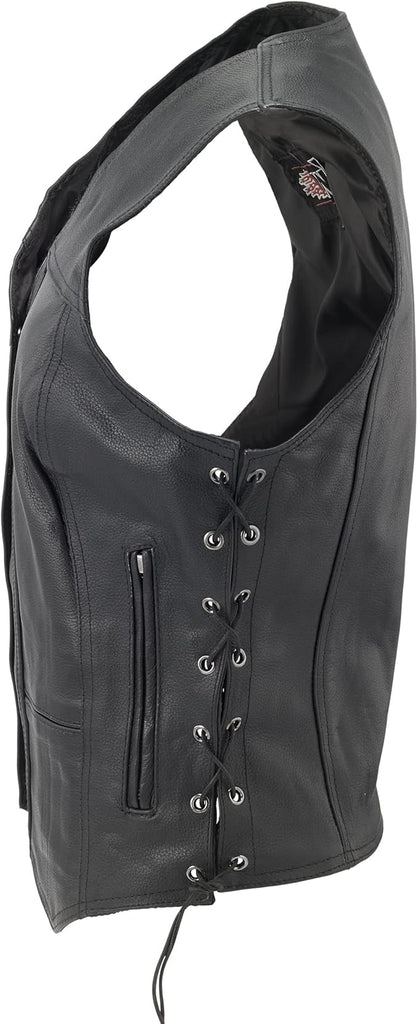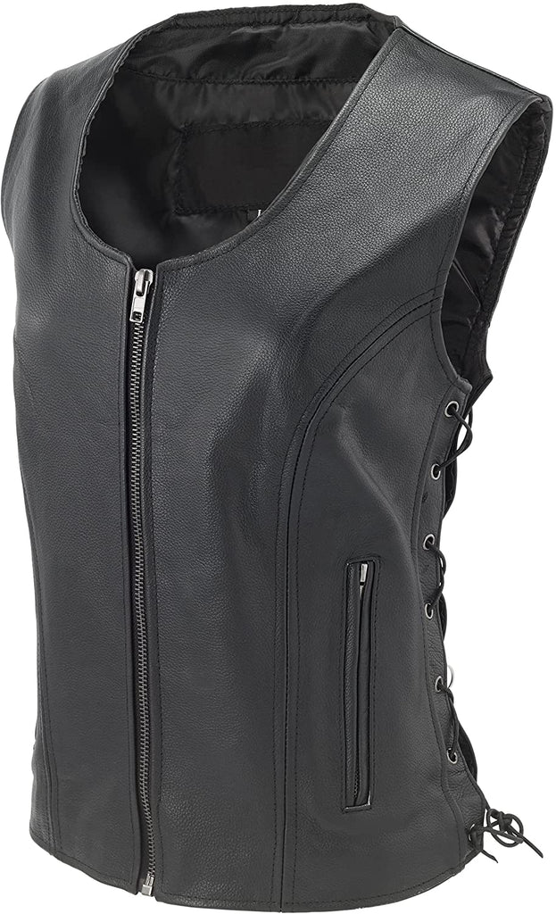 EXCELSIOR INT WOMEN'S CONCEALED CARRY SLEEVELESS SOLID SOFT LEATHER VEST WITH SIDE LACES MOTORCYCLE BIKER JACKET FOR WOMEN