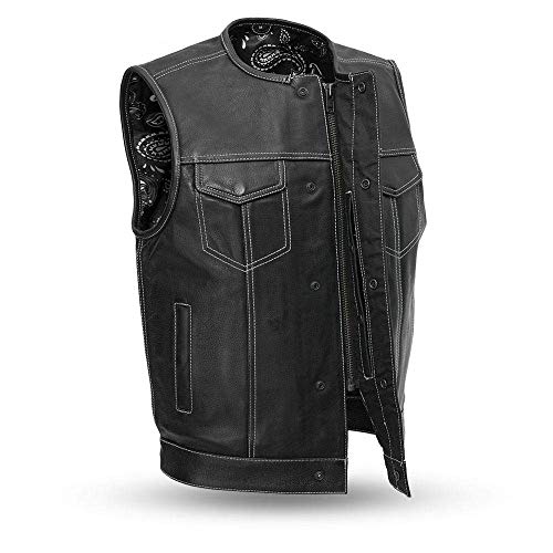 EXCELSIOR MEN'S SONS OF ANARCHY COLLARLESS LEATHER VEST WITH 2 GUN 2 CHEST POCKETS SINGLE BACK PANEL MOTORCYCLE RIDER JACKET FOR MEN
