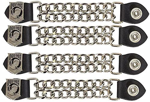 EXCELSIOR UNISEX METAL AND LEATHER CHROME DURABLE MOTORCYCLE VEST EXTENDERS POW CHAIN FOR BIKERS -4 INCH, 6 1/2 INCH, (4 PC)