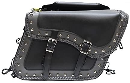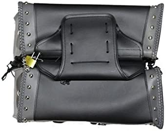 High quality PV leather style throwover saddlebags hold their shape and will not turn white in extreme heat. Universal fitting with quick-release strap buckles, locks and heavy duty zippers. Quick-release system allows you to remove each bag and carry them with you if needed. Fits many makes and models but please check size for fitment (below). Dimensions: 19" long x 12-1/4" high x 7-1/4" wide (each bag) Includes locks/keys for each bag for security Zip off bags with Heavy Duty Velcro Cover Adjustable center strap to fit stock or custom exhaust setups Outside end and front pockets (good for phone, keys, lighter, etc.) Hard sheet inside bags & 4 extra pockets Tie-downs for extra security against movement at high speeds 100% Waterproof UV Protected - Will not turn white in extreme heat (no cracks or blisters) Heavy Duty Quick-release buckles behind straps for easy access Extra mounting hardware not required
