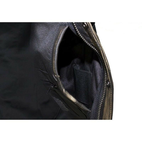 Black Leather Vest, 2 Front Pockets * Gun Pocket w/ Strap , NO COLLAR VEST